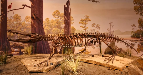 Borealosuchus (meaning "northern crocodile") is an extinct genus of crocodyliforms that lived from the Late Cretaceous to the Eocene in North America. It was named by Christopher Brochu in 1997 for several species that had been assigned to Leidyosuchus. The species assigned to it are: B. sternbergii, the type species, from the Maastrichtian (Late Cretaceous) of Colorado, Montana, North Dakota, South Dakota, and Wyoming; B. acutidentatus, from the Paleocene of Saskatchewan; B. formidabilis, from the Paleocene of North Dakota; B. griffithi, from the Paleocene of Alberta; and B. wilsoni, from the Eocene of Wyoming. B. formidabilis is particularly well-known, represented by the remains of many individuals from the Wannagan Creek site in North Dakota. An indeterminate species is known from the Late Cretaceous Demopolis Chalk in Alabama