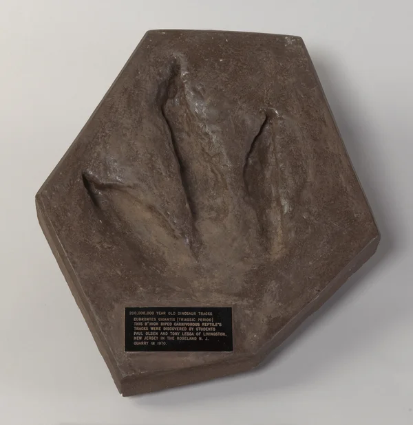 Eubrontes is the name of fossilised dinosaur footprints dating from the Late Triassic and Early Jurassic. They have been identified from France, Poland, Slovakia, Czech Republic, Italy, Spain, Sweden, Australia (Queensland), US, India, China and Brazil (South). Eubrontes is the name of the footprints, identified by their shape, and not of the genus or genera that made them, which is as yet unknown but is presumed to be similar to Coelophysis or Dilophosaurus