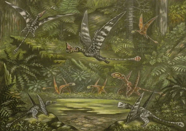 Eudimorphodon is an extinct genus of pterosaur that was discovered in 1973 by Mario Pandolfi in the town of Cene, Italy and described the same year by Rocco Zambelli. The nearly complete skeleton was retrieved from shale deposited during the Late Triassic (mid to late Norian stage, 219-215 million years ago), making Eudimorphodon one of the oldest pterosaurs known. It had a wingspan of about 100 centimeters (3.3 ft)