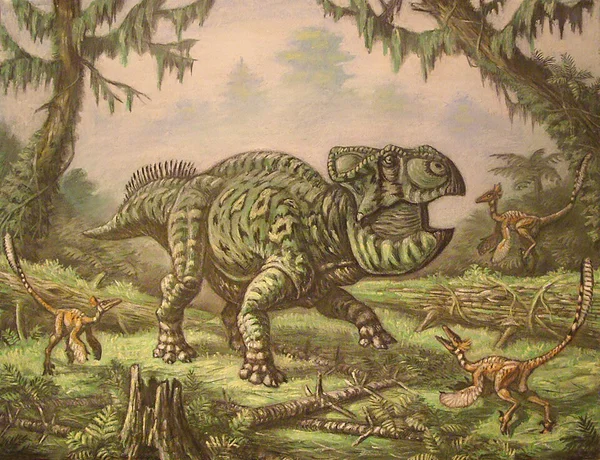 Udanoceratops (meaning "Udan-Sayr horned face") is a genus of large leptoceratopsid dinosaur that lived during the Late Cretaceous period of Mongolia. The holotype specimen, the partial skeleton of an adult with its bones encapsulated in calcium carbonate, was discovered in the 1980s as part of the Joint Soviet-Mongolian Paleontological Expedition, and was subsequently transported to the Paleontological Institute of the Russian Academy of Sciences. In 1992, it was described by palaeontologist Sergei Kurzanov. The sole species of Udanoceratops, also the type species, is Udanoceratops tschizhovi, named after a colleague of Kurzanov, D. O. Tschizhov